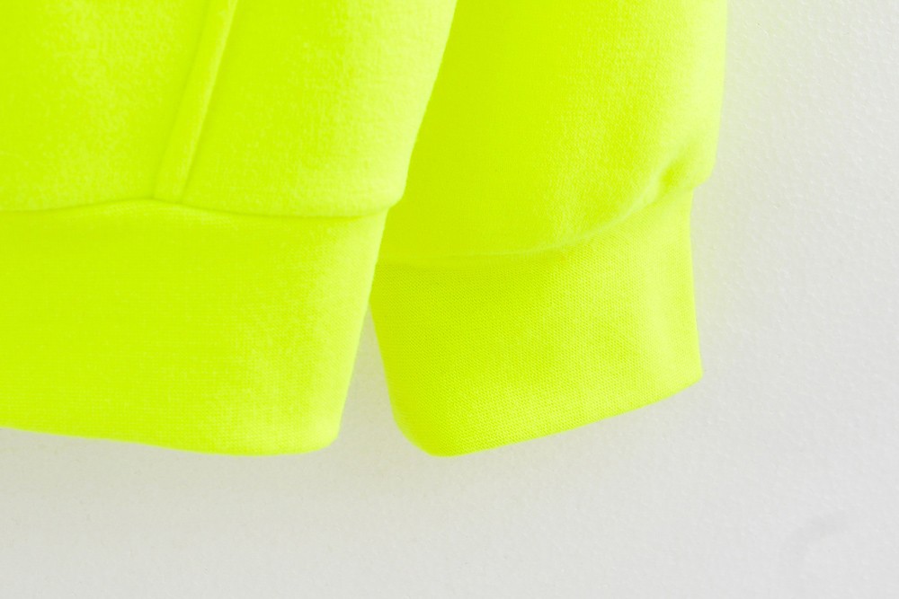 Body:100%polyester fleece, 260g/m2 Hem: 95%poly5%spandex 1x1 rib, 300g/m2